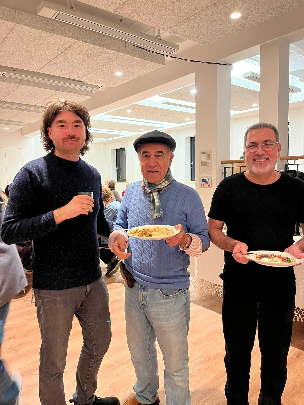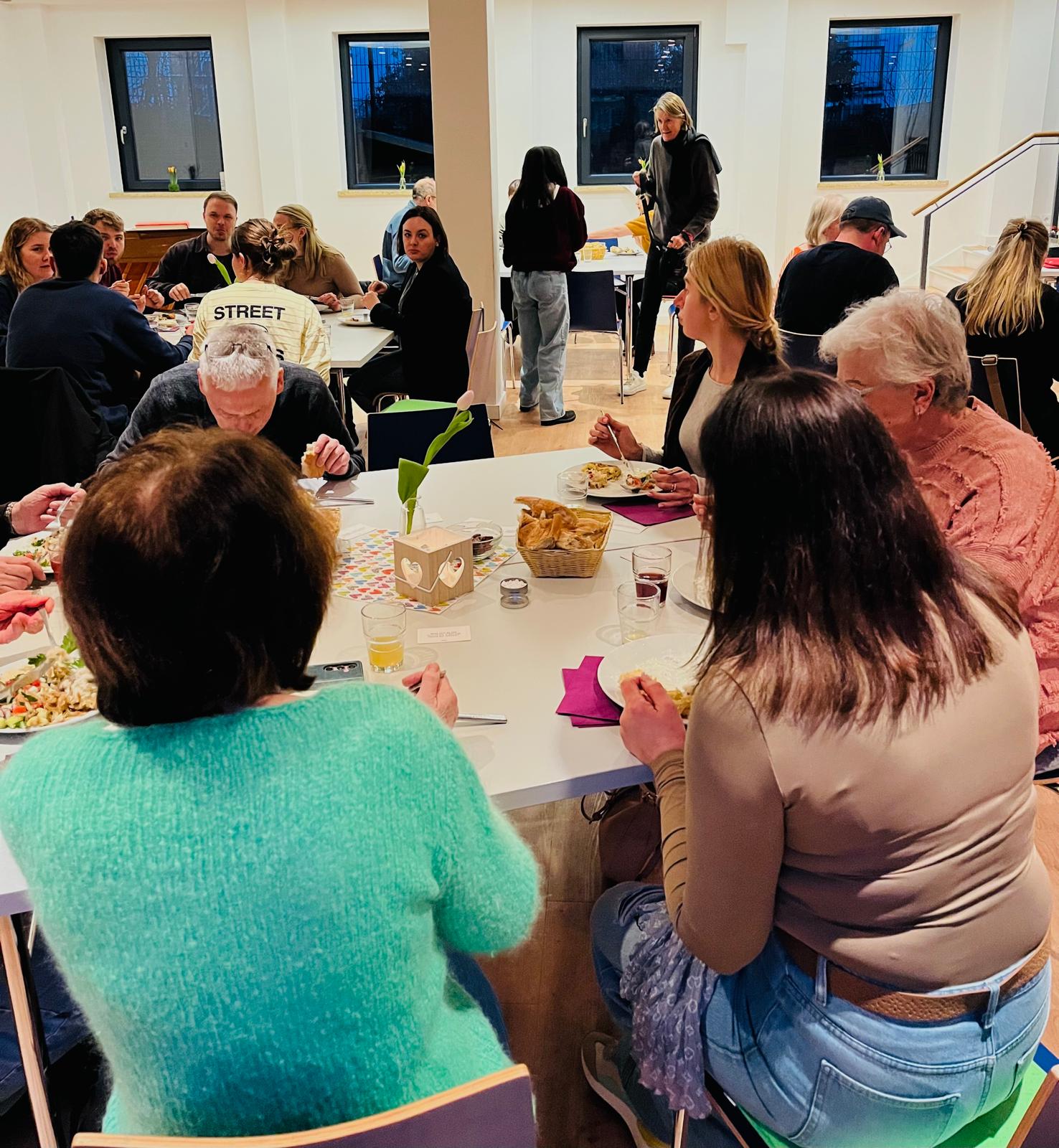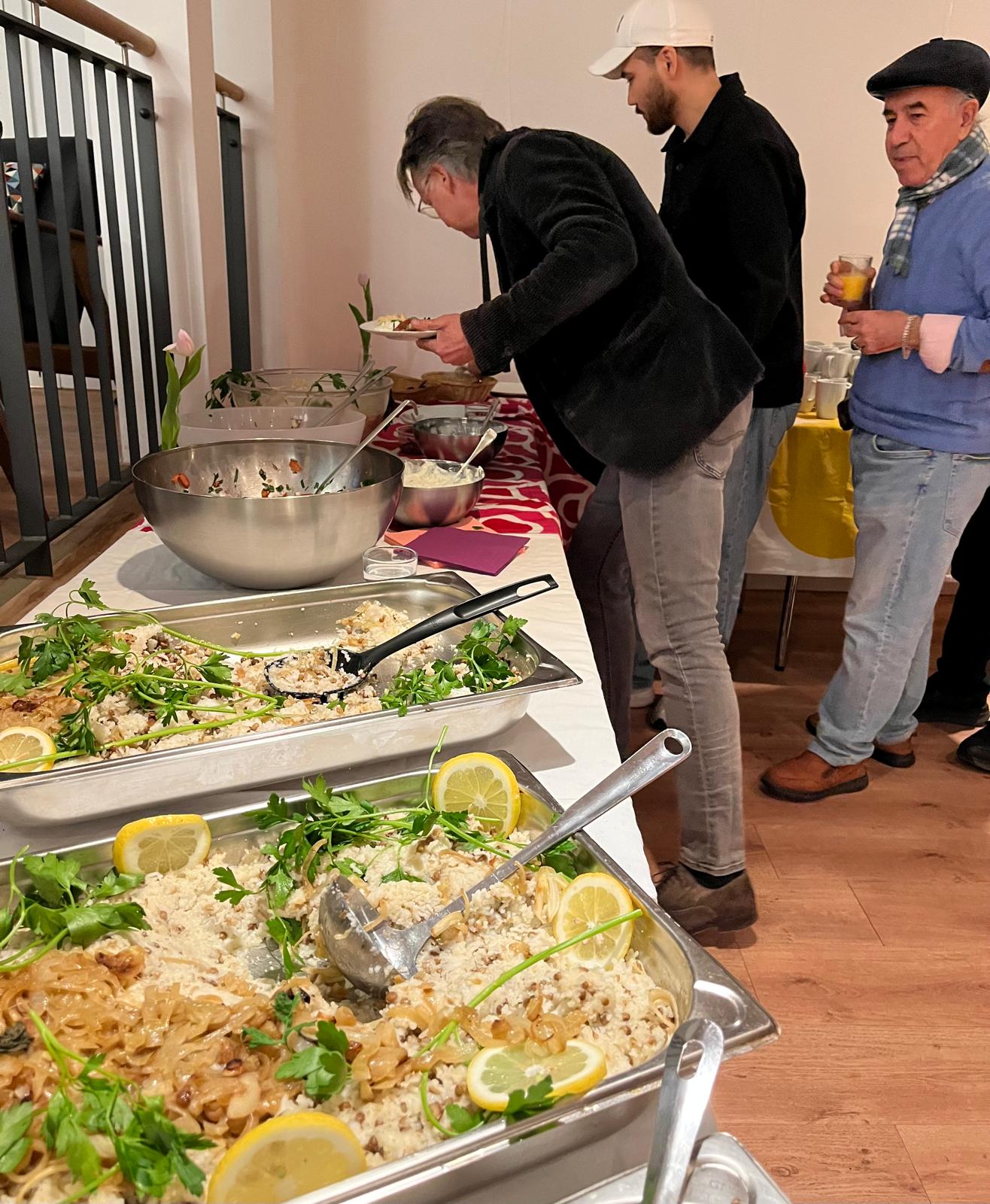 Dieses Jahr haben wir mit einem tollen Abend in der Kreuzkirche Eimsbüttel den Auftakt dieses Angebots gefeiert. Mit 30 Gästen aus der Gemeinde und der Nachbarschaft haben wir dank des engagierten Kochteams – Mohamad, Ksenia und Majid – leckere syrische Gerichte gemeinsam genossen und wunderbare Gespräche geführt.